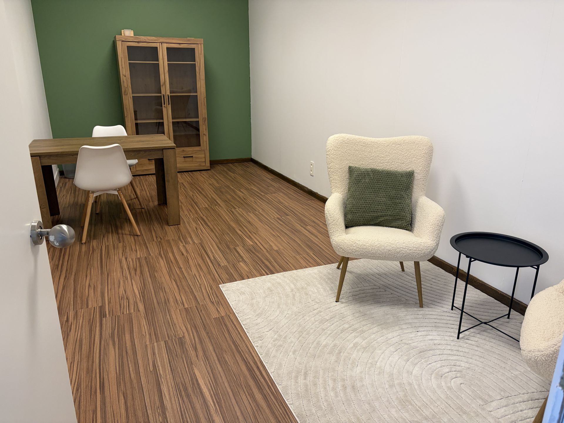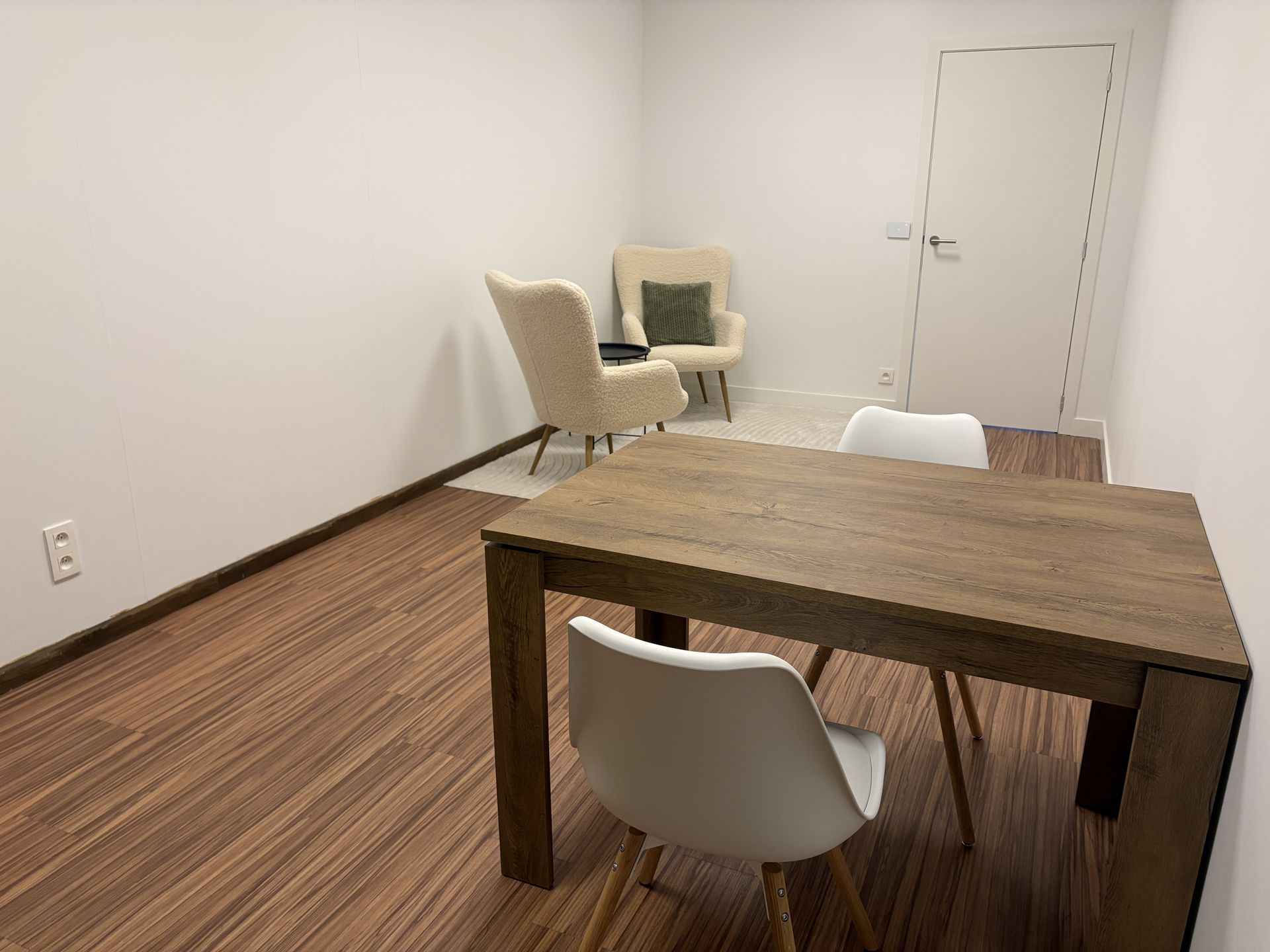 De ene ruimte leent zich bijzonder goed voor gesprekstherapie, coaching en begeleidende sessies.